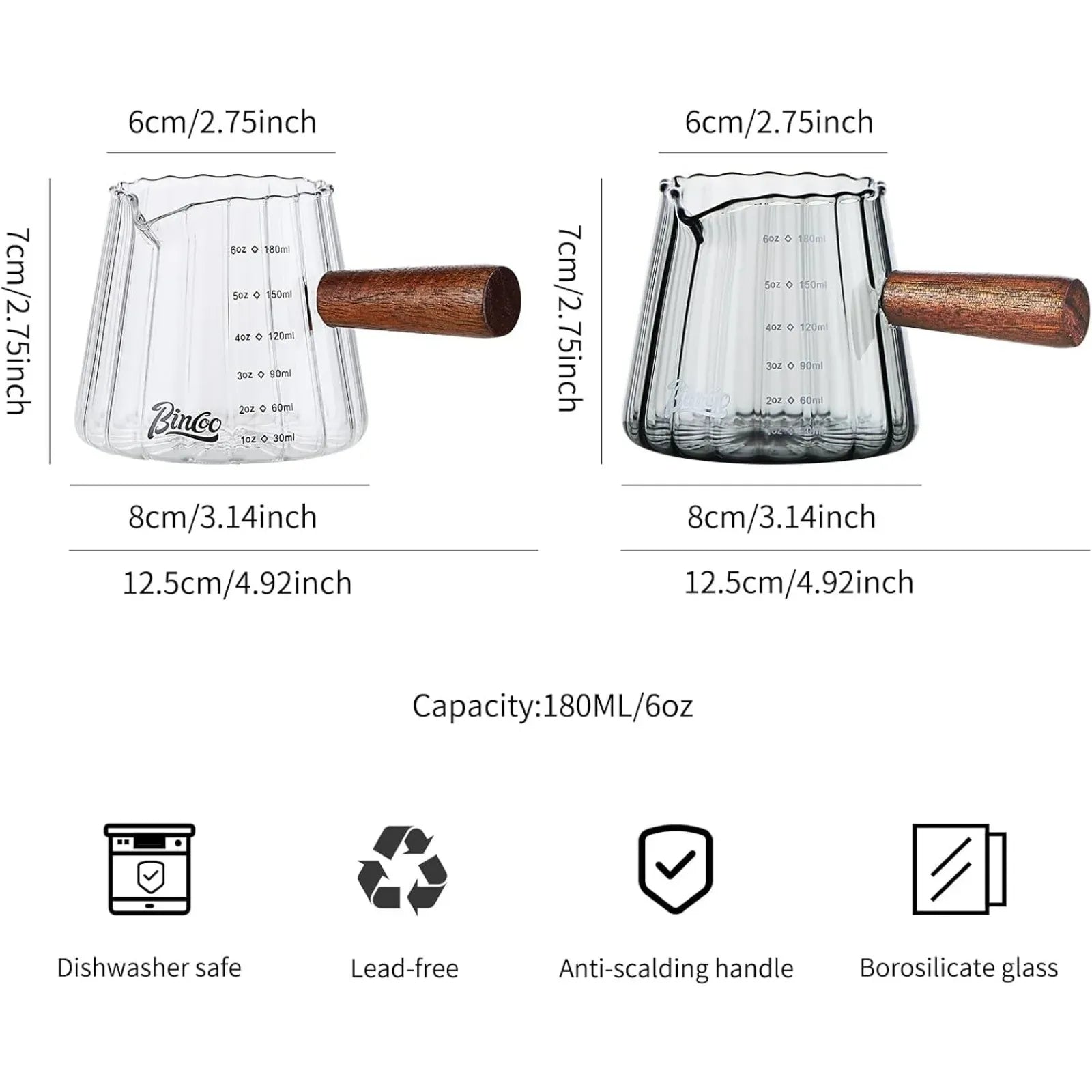The Bincoo Espresso Shot Glass with Wood Handle combines heat-resistant glass with elegant wood detailing for precise measurement, controlled pouring, and visual clarity — essential for consistent espresso and milk preparation.